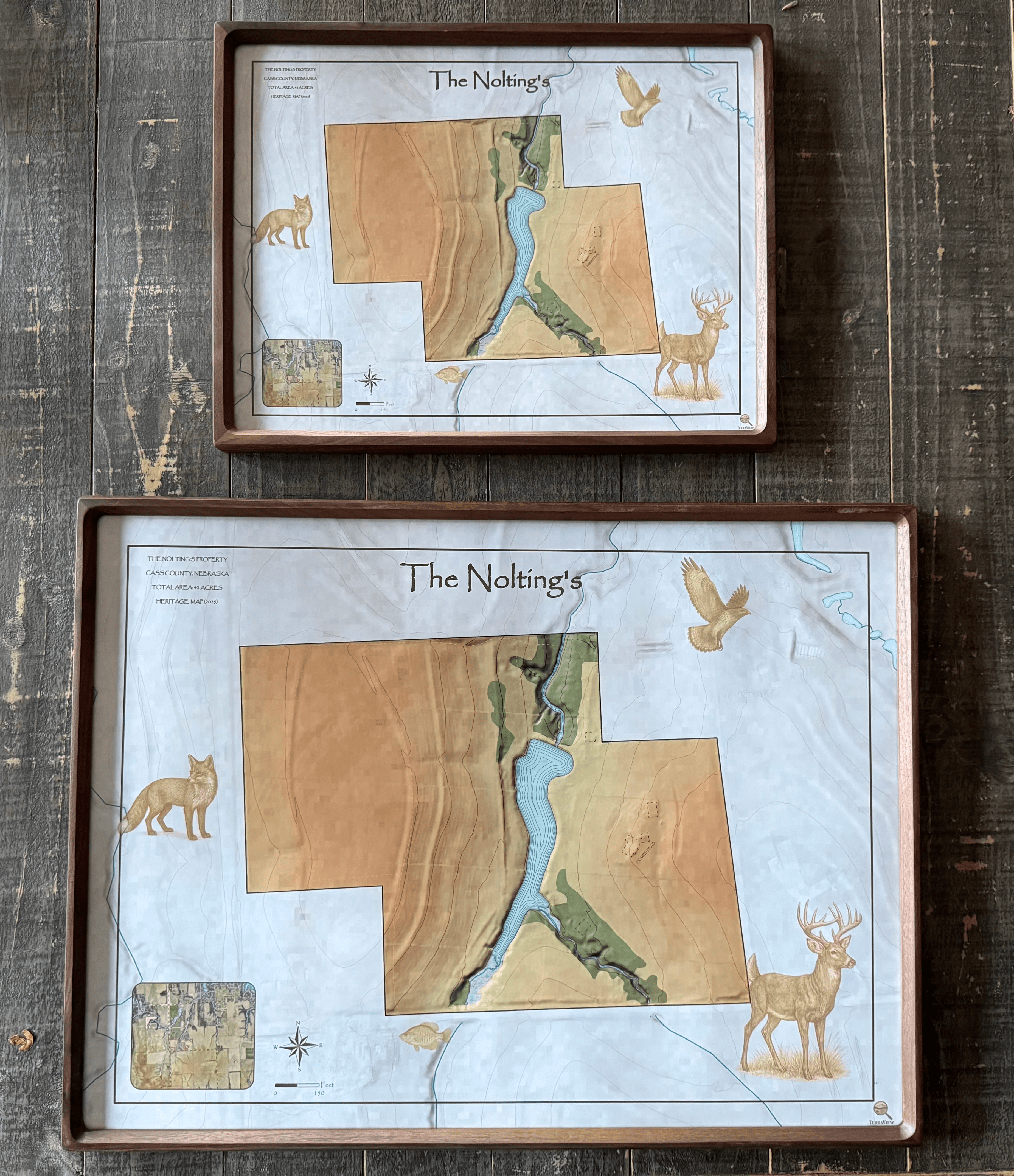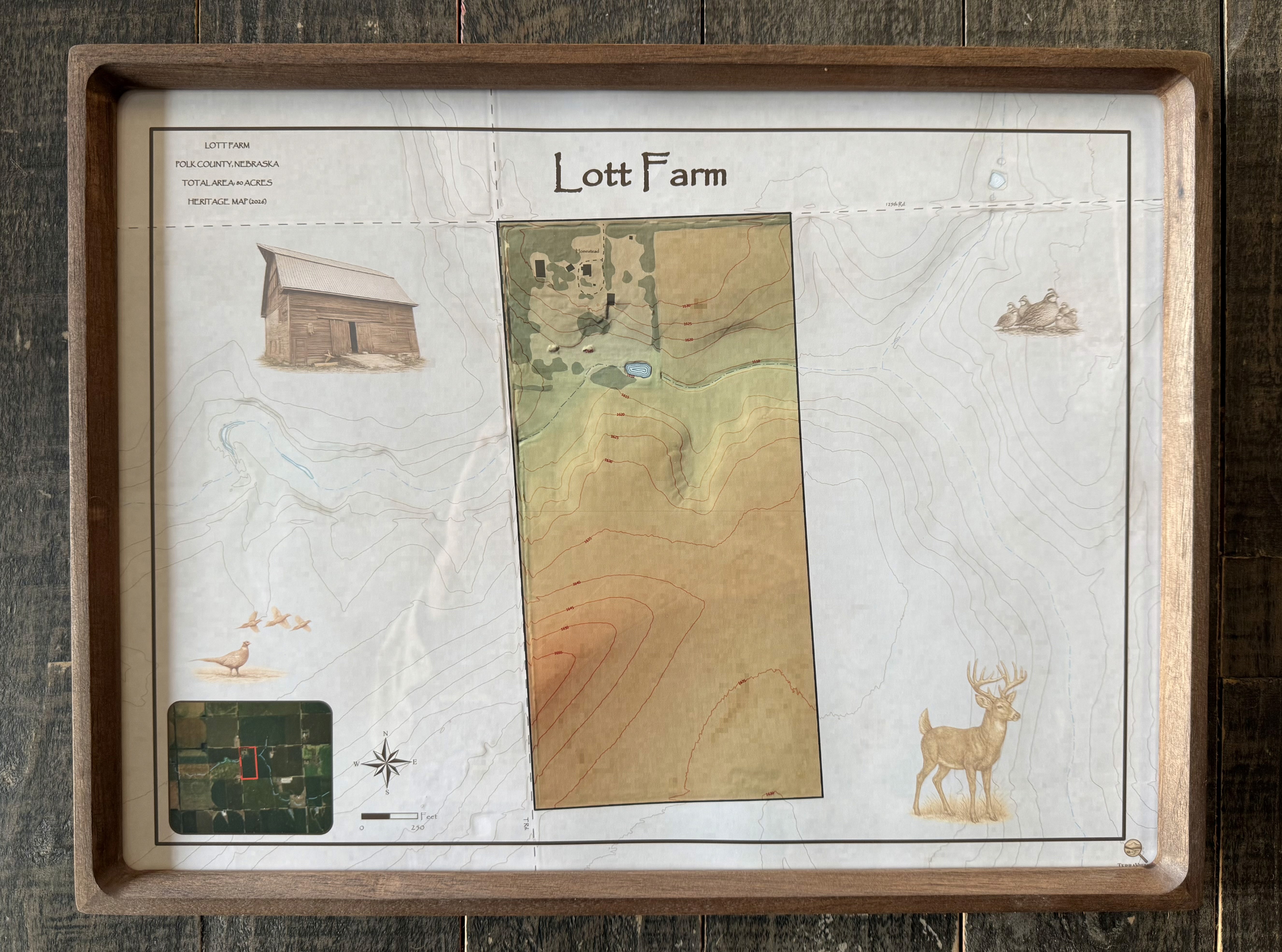 Heritage Maps transform the land you love into heirloom cartography meant to last generations. Each map is meticulously crafted to capture not just the geography of your property, but its soul. These maps are hand crafted tributes to family farms, ranches, and acreages where land means more.
